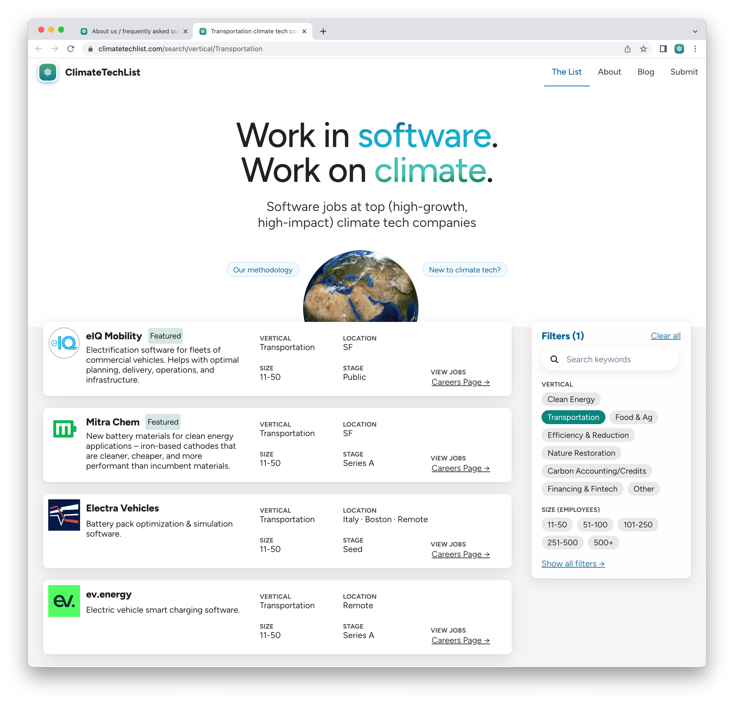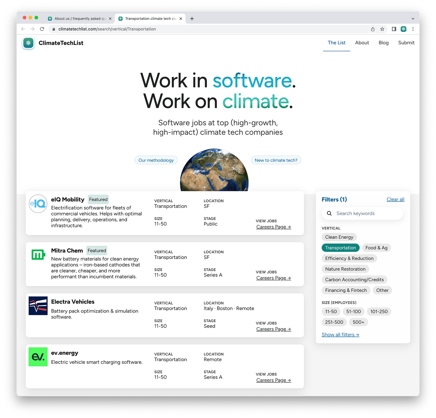 …but the site has gotten more traction than expected — thousands of visitors and at least two engineers found jobs at ClimateTechList companies as a result